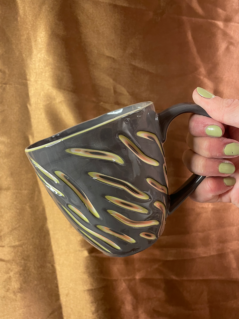 In this series I create texture, relief and patterns by carving through different layers of colored slip. This is a meticulous and time intensive process, so the products are a bit more expensive than those in other series.